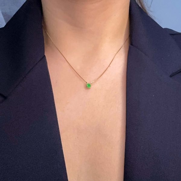 Crafted in luminous 18k yellow gold, this Venetian link chain is paired with a refined pendant of matching gold. At its center rests a brilliant-cut emerald, delicately secured in elegant claw settings, with a total weight of 0.28 carats. A timeless piece that blends masterful craftsmanship with the captivating beauty of emeralds.