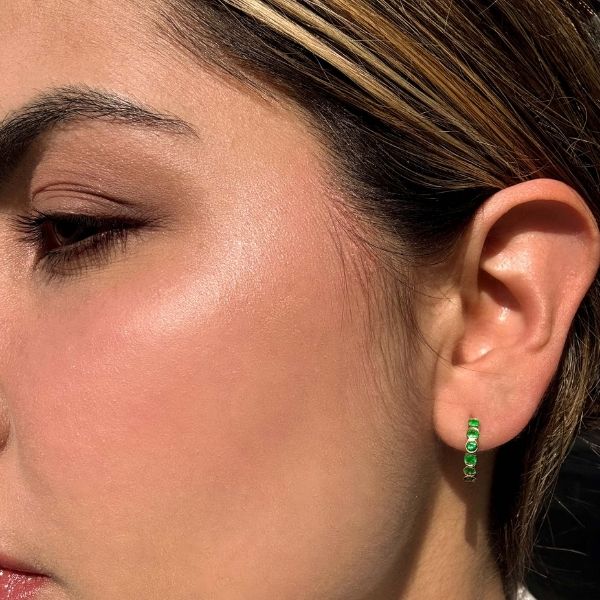 • Cut emeralds totaling 0.56 cts per pair (0.04 cts each)